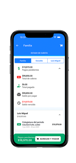 Permite a los padres de familia y estudiantes pagar sus colegiaturas por múltiples canales de pago, conocer sus estados de cuenta en tiempo real y facturar al instate.